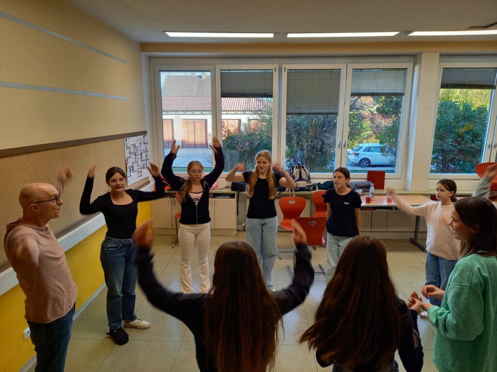 4. 11. im Rahmen des Freifaches „Darstellendes Spiel“ mit Herrn Georg Wandl (Leiter der bekannten Improtheatergruppe „jumpers [re]loaded) zu den Themen Stressbewältigung und Improvisationstheater.